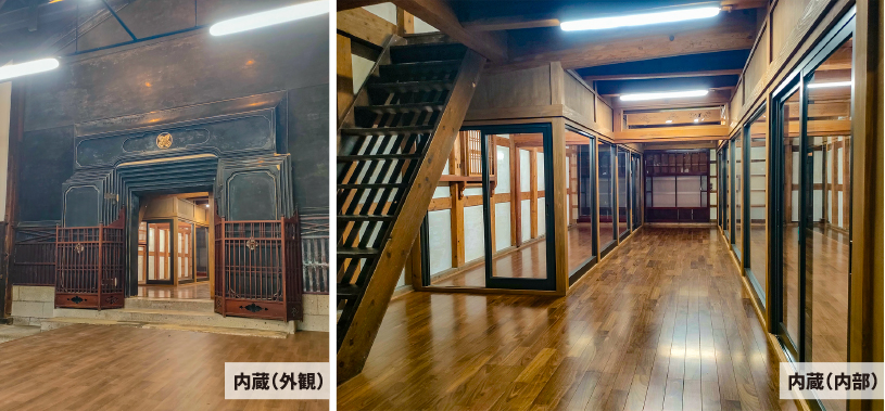 伝統的建造物を活用してマンガの保存・公開を行いながら、同時に「マンガ」の力を活用して地域に残る伝統的な建物の保存にも取り組むことを目的としています。 休憩コーナーを兼ね備えた情報発信スペース。「マンガ」保存の取組みほか、マンガ本の設置や複製原画展示、地域情報の発信も行っています。 情報発信スペースの奥にはこの地域特有の建造物「内蔵」があり、開架の収蔵庫として活用していく予定です。